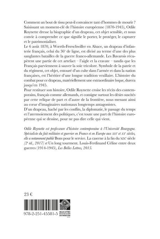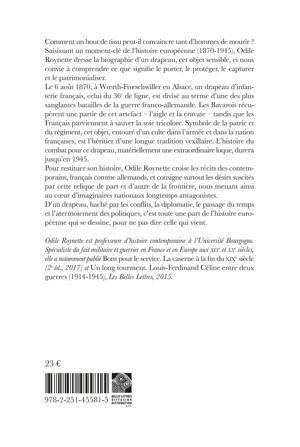 Saisissant un moment-clé de l’histoire européenne (1870-1945), Odile Roynette dresse la biographie d’un drapeau, cet objet sensible, et nous convie à comprendre ce que signifie le porter, le protéger, le capturer et le patrimonialiser.