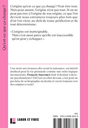 Si on ne peut pas être à l’origine de son origine, ce que l’on devient nous entraînera toujours plus loin que d’où l’on vient, au-delà de toute prédiction et de tout déterminisme. L’origine, qu’est-ce que ça change ? Peut-être tout, répond François Ansermet. Mais l’origine n’est pas tout. À moins de la comprendre comme « toujours à venir », partenaire de l’instant qui rouvre sans cesse les potentialités de nos vies. Explorant les rapports entre l’origine et le secret, la mort, la génétique, l’identité ou encore la technologie, l’auteur nous entraîne dans une notion qui nous confronte sans cesse à l’inconnaissable. Si cet inconnaissable peut tourner à l’obsession, il peut aussi être, au contraire, garant d’une créativité infinie.