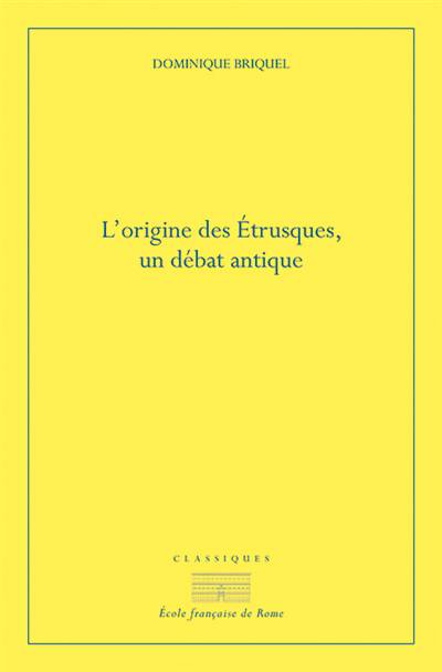 Ce coffret se compose de 3 livres publiés par Dominique Briquel à des moments différents de son parcours scientifique. Le premier, daté de 1984, est issu de sa thèse de doctorat sur la légende de l'origine « orientale » des Étrusques, le second de 1991 qui explorait le même thème mais considérait la thèse d'une autre provenance, toujours orientale, et le dernier qui se consacrait à la thèse de l'autochtonie défendue en particulier par Denys d'Halicarnasse. L'auteur se refusait de faire de l'origine du peuple d'Étrurie une question historique. Ce qui l'intéressait, et le passionne toujours, c'est ce trait culturel des Anciens qui consiste à assigner une origine bien définie aux différents peuples, la plus ancienne possible, permettant ainsi d'établir une hiérarchie de dignité entre eux. Les Étrusques n'ont pas échappé à la règle et se sont vus attribuer des origines, soit extérieures, soit interne à la péninsule italienne, à travers des généalogies devenues des récits légendaires extrêmement diffus dans le monde méditerranéen