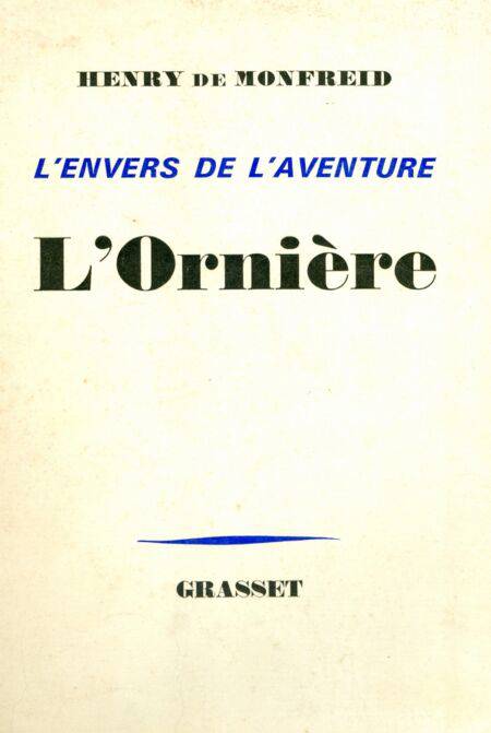 L'envers de l'aventure, 9 " Dans ce nouveau tome de la vaste autobiographie qu'il a entreprise, Henry de Monfreid nous transporte au début de ce siècle. Le futur navigateur des mers du Sud n'est encore qu'un fantassin à pantalon garance, fraîchement incorporé. Ennemi de toute contrainte, ce jeune homme n'a guère de goût pour la vie militaire, d'autant qu'il lui faut nourrir une compagne et son enfant. Au risque de s'empoisonner au chlore, il réussit à se faire réformer. C'est alors que commence pour lui une existence difficile, qu'il affronte vaillamment. Tour à tour porteur aux halles, courtier en café, laveur de voitures, chauffeur-cicérone, puis ingénieur chimiste, comment aurait-il pu deviner qu'un destin hors série l'attendait, au détour de L'Ornière où il semblait engagé ?".
