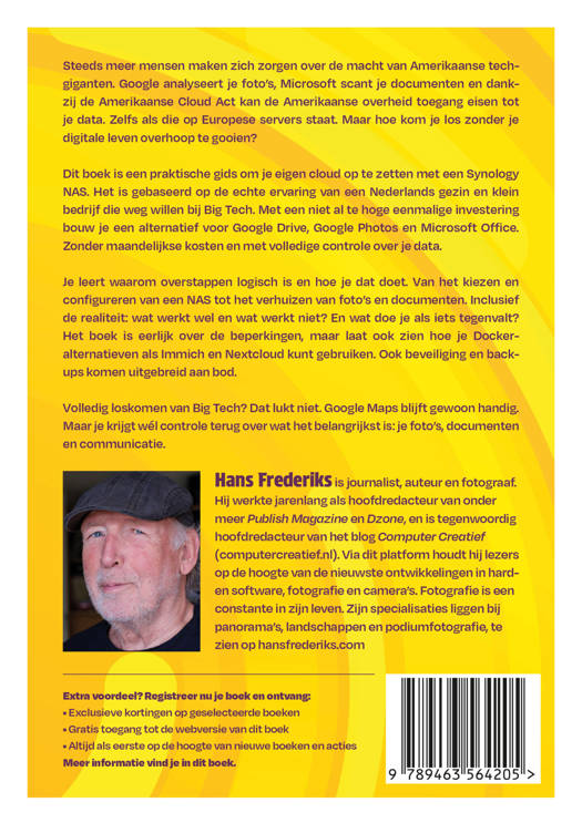 Het boek begint met het waarom: de Cloud Act, privacy-schendingen, de werkelijke kosten van 'gratis' diensten. Vervolgens duikt het de praktijk in: een Synology NAS kiezen, opzetten en configureren. Niet alleen de technische kant, maar ook de realiteit van een gezin dat overstapt. Hoe krijg je je partner en kinderen mee? Wat als iets niet werkt?