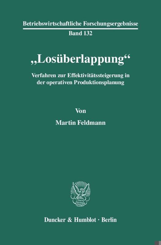 - Verfahren, die mit linearer Programmierung arbeiten und eine Aufteilung der Losgröße in konsistente Teillose im Mehrstufenfall vornehmen. Erstmals wird eine ökonomische Analyse für Losüberlappungsprobleme vorgeschlagen, die einen effektiven Einsatz diverser Anpassungsmaßnahmen erlaubt, indem sie ihre Konsequenzen quantifiziert.