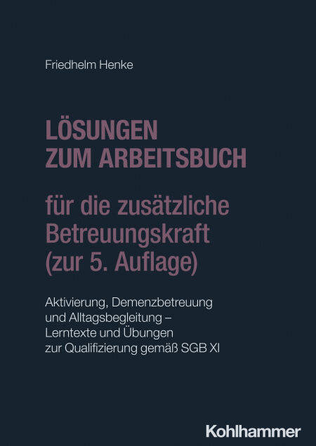 Diese Lösungen gehören zu dem Werk "Arbeitsbuch für die zusätzliche Betreuungskraft" (5., erweiterte und überarbeitete Auflage, ISBN 978-3-17-046440-7). Das Buch enthält Lösungen zu den Aufgaben sowie editierbare Arbeitshilfen zum Arbeitsbuch für die zusätzliche Betreuungskraft. Dies ist abgestimmt auf die aktuellen Richtlinien des SGB XI. Mit Aktivierung und Zuwendung bieten zusätzliche Betreuungskräfte Personen mit Betreuungsbedarf besonders Wertschätzung und Lebensqualität. Menschen mit Demenz, geistiger Behinderung oder psychischen Erkrankungen ermöglichen sie damit den Austausch mit anderen Menschen und mehr Teilhabe am Leben.