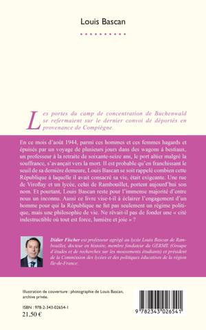Les portes du camp de concentration de Buchenwald se refermaient sur le dernier convoi de déportés en provenance de Compiègne. Il est probable qu'en franchissant le seuil de sa dernière demeure, Louis Bascan se soit rappelé combien cette République à laquelle il avait consacrée sa vie était exigeante. Une rue de Viroflay et un lycée de Rambouillet, portent aujourd'hui son nom. Et pourtant, il reste pour l'immense majorité d'entre nous inconnu. Aussi ce livre vise-t-il à éclairer l'engagement d'un homme pour qui la République ne fut pas seulement un régime politique, mais une philosophie de vie.
