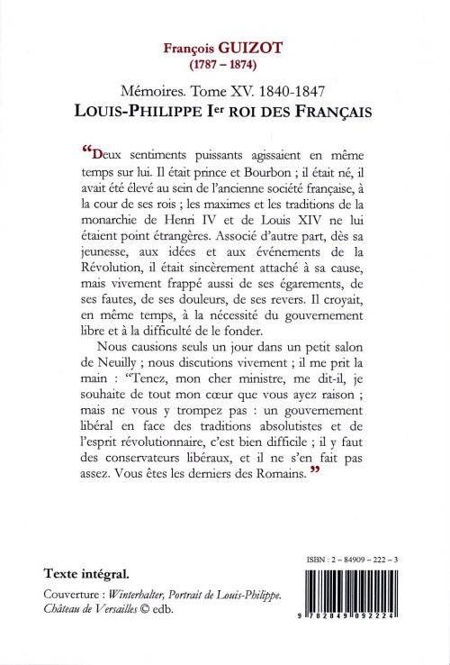 « Deux sentiments puissants agissaient en même temps sur lui. Il était prince et Bourbon ; il était né, il avait été élevé au sein de l'ancienne société française, à la cour de ses rois ; les maximes et les traditions de la monarchie de Henri IV et de Louis XIV ne lui étaient point étrangères. Associé d'autre part, dès sa jeunesse, aux idées et aux événements de la Révolution, il était sincèrement attaché à sa cause, mais vivement frappé aussi de ses égarements, de ses fautes, de ses douleurs, de ses revers. Il croyait, en même temps, à la nécessité du gouvernement libre et à la difficulté de le fonder.