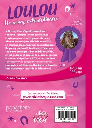 À 14 ans, Mina s’apprête à réaliser son rêve : intégrer l’école des courses hippiques pour devenir garçon de cour ! Dès son premier jour, elle doit accueillir un nouveau pensionnaire un peu particulier… Un poney shetland ! Rustique et facétieux, Loulou va partager le box de Mille et Mille, un majestueux champion de course rongé par le stress. Malgré leurs différences, les deux chevaux vont se rapprocher et surmonter ensemble les difficultés. Une histoire d’amitié hors du commun inspirée de faits réels !