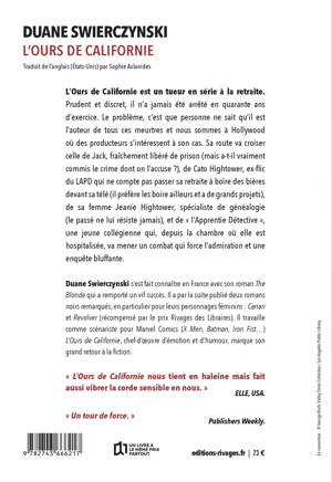 L'Ours de Californie est un tueur en série à la retraite. Prudent et discret, il n'a jamais été arrêté en quarante ans d'exercice. Le problème, c'est que personne ne sait qu'il est l'auteur de tous ces meurtres et nous sommes à Hollywood où des producteurs s'intéressent à son cas. Sa route va croiser celle de Jack, fraîchement libéré de prison (mais a-t-il vraiment commis le crime dont on l'accuse ?), de Cato Hightower, ex-flic du LAPD qui ne compte pas passer sa retraite à boire des bières devant sa télé (il préfère les boire ailleurs et a de grands projets), de sa femme Jeanie Hightower, spécialiste de généalogie (le passé ne lui résiste jamais), et de « l'Apprentie Détective », une jeune collégienne qui, depuis la chambre où elle est hospitalisée, va mener un combat qui force l'admiration et une enquête bluffante.