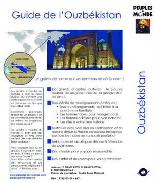 Un guide conçu par des Ouzbeks qui présente l'histoire et la culture de ce pays d'Asie centrale, en décrit chaque région et apporte des renseignements pratiques pour planifier son voyage. Avec de nombreuses cartes indiquant les sites remarquables, les monuments et les équipements touristiques pour se loger et se restaurer.