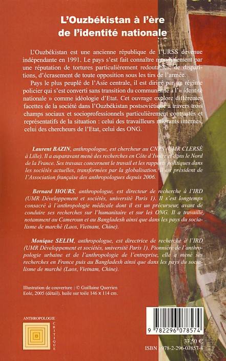 Ancienne république de l'URSS, l'Ouzbékistan est devenu indépendant en 1991. Pays le plus peuplé d'Asie centrale, il est dirigé par un régime policier qui s'est converti sans transition du communisme à l'identité nationale comme idéologie. Voici une exploration au travers des différentes facettes de la société dans l'Ouzbakistan postsoviétique.
