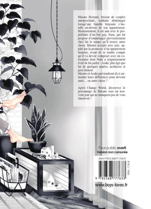 Masato Hozumi, briseur de couples autoproclamé, souhaite déménager lorsqu'une famille bruyante s'installe au-dessus de son appartement. Heureusement, il est ami avec le propriétaire d'un bar gay, Naru, qui lui propose d'emménager provisoirement chez lui le temps qu'il trouve autre chose. Masato accepte avec joie, appâté par la promesse d'un appartement luxueux, avant de se rendre compte qu'il va devoir composer avec un colocataire dont Naru a soigneusement évité de lui parler : Asahi, plus âgé que lui de quelques années, architecte et gros fumeur. Masato et Asahi parviendront-ils à surmonter leurs différences pour devenir amis... ou autre chose ?