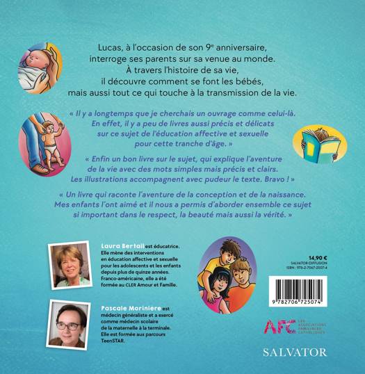Lucas, à l'occasion de son 9e anniversaire, interroge ses parents sur sa venue au monde. À travers l'histoire de sa vie, il découvre comment se font les bébés, mais aussi tout ce qui touche à la transmission de la vie. « Il y a longtemps que je cherchais un ouvrage comme celui-là. En effet, il y a peu de livres aussi précis et délicats sur ce sujet de l'éducation affective et sexuelle pour cette tranche d'âge.» « Enfin un bon livre sur le sujet, qui explique l'aventure de la vie avec des mots simples mais précis et clairs. Les illustrations accompagnent avec pudeur le texte. Bravo !» « Un livre qui raconte l'aventure de la conception et de la naissance. Mes enfants l'ont aimé et il nous a permis d'aborder ensemble ce sujet si important dans le respect, la beauté mais aussi la vérité.»