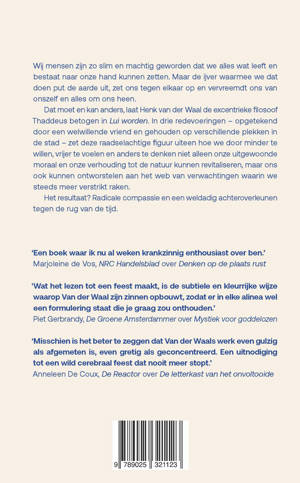 Dat moet en kan anders, laat Henk van der Waal de excentrieke filosoof Thaddeus betogen in Lui worden. In drie redevoeringen – opgetekend door een welwillende vriend en gehouden op verschillende plekken in de stad – zet deze raadselachtige figuur uiteen hoe we door minder te willen, vrijer te voelen en anders te denken niet alleen onze uitgewoonde moraal en onze verhouding tot de natuur kunnen revitaliseren, maar ons ook kunnen ontworstelen aan het web van verwachtingen waarin we steeds meer verstrikt raken.