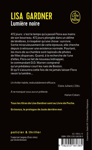Sortie miraculeusement de cette épreuve, elle cherche depuis à retrouver une existence normale. Pourtant, les murs de sa chambre sont tapissés de photos de filles disparues. Quand, à la recherche de l’une d’elles, Flora se fait de nouveau kidnapper, le commandant D.D. Warren comprend qu’un prédateur court les rues de Boston, qui s’assurera cette fois que Flora ne revoie jamais la lumière…