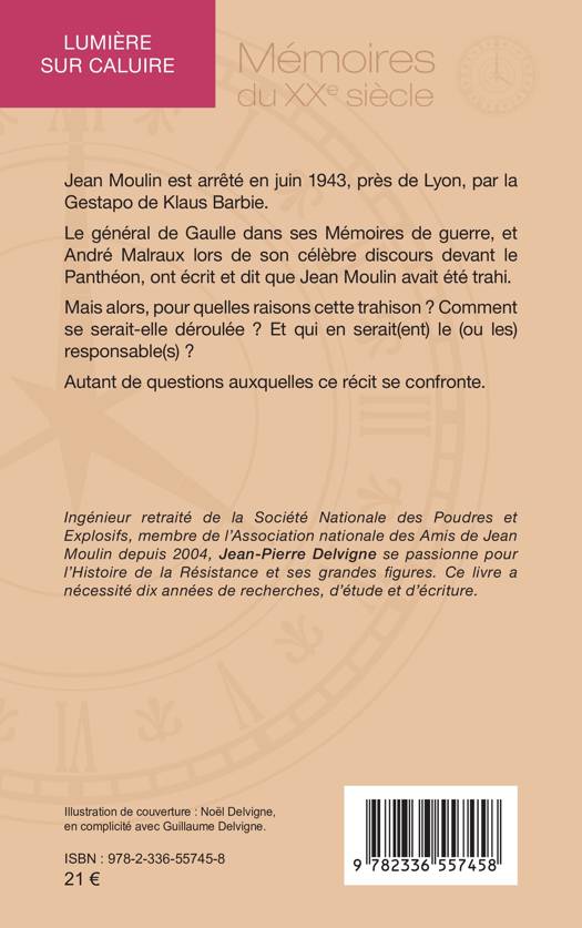 Jean Moulin est arrêté en juin 1943, près de Lyon, par la Gestapo de Klaus Barbie. Le général de Gaulle dans ses Mémoires de guerre, et André Malraux lors de son célèbre discours devant le Panthéon, ont écrit et dit que Jean Moulin avait été trahi. Mais alors, pour quelles raisons cette trahison ? Comment se serait-elle déroulée ? Et qui en serait(ent) le (ou les) responsable(s) ? Autant de questions auxquelles ce récit se confronte.