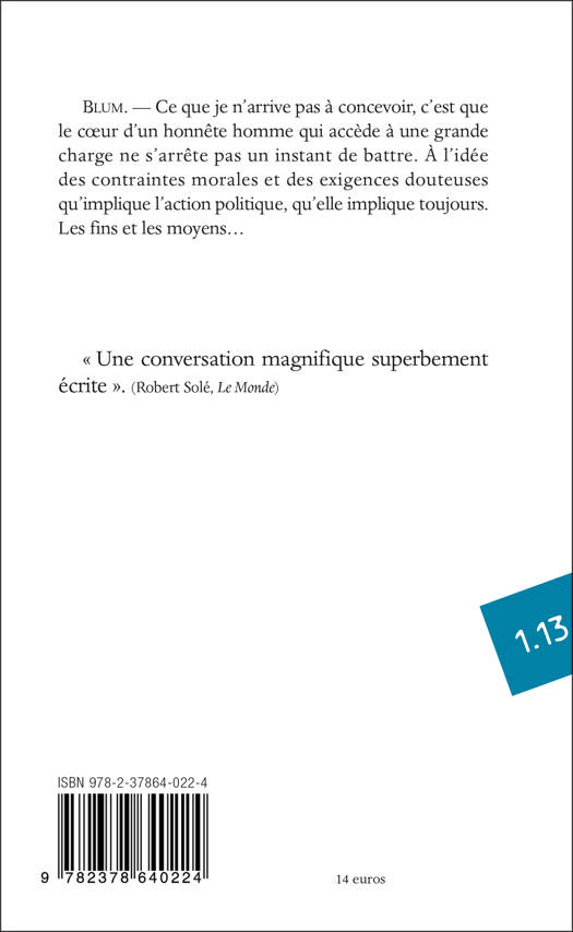 L’Un de nous deux. Voici un dialogue imaginaire, le 27 et le 28 juin 1944, entre Léon Blum et Georges Mandel, livrés par le régime de Pétain aux Allemands, et emprisonnés dans une petite maison proche du camp de concentration de Buchenwald. Ils y sont demeurés ensemble près de quatorze mois à partir du printemps 1943. Apprenant le meurtre de Philippe Henriot, ministre de l’Information de Vichy, accompli par la Résistance le 28 juin 1944, ils pressentent que l’un d’entre eux va être exécuté en représailles. C’est Mandel qui sera renvoyé en France, livré à la Milice et assassiné en forêt de Fontainebleau, le 7 juillet. Léon Blum, après s’être attendu constamment à subir le même sort, survivra. Les deux hommes, au fil des péripéties de leur angoisse et de leur espoir, confrontent leurs visions du monde et de la politique, en se référant aux deux grands hommes dont ils se veulent les disciples : Jean Jaurès pour l’un, Clemenceau pour l’autre — si bien que leur dialogue paraît souvent s’élargir à quatre voix.