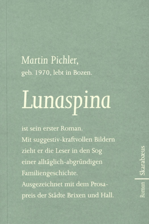 "Lunaspina" ist Martin Pichlers erster Roman. Mit suggestiv-kraftvollen Bildern zieht er den Leser in den Sog einer alltäglich-abgründigen Familiengeschichte. Ausgezeichnet mit dem Prosapreis der Städte Brixen und Hall.