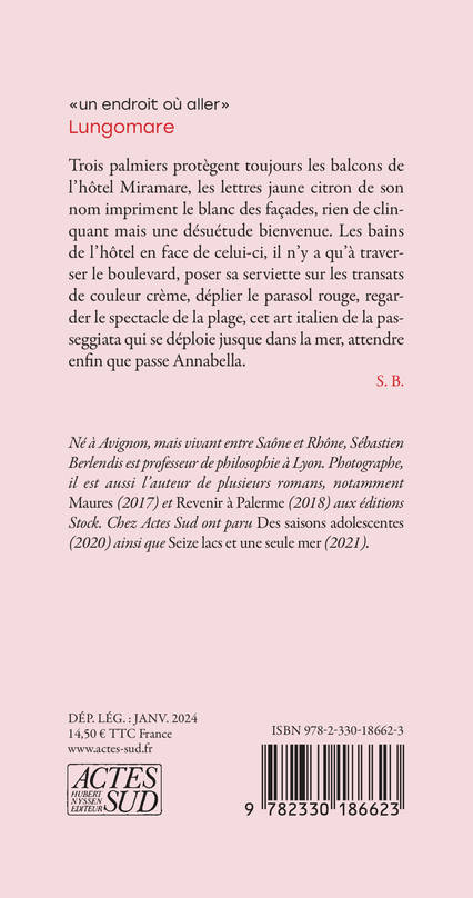 Trois palmiers protègent toujours les balcons de l'hôtel Miramare, les lettres jaune citron de son nom impriment le blanc des façades, rien de clinquant mais une désuétude bienvenue. Les bains de l'hôtel en face de celui-ci, il n'y a qu'à traverser le boulevard, poser sa serviette sur les transats de couleur crème, déplier le parasol rouge, regarder le spectacle de la plage, cet art italien de la passeggiata qui se déploie jusque dans la mer, attendre enfin que passe Annabella.