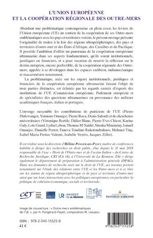 Cet ouvrage offre un panorama de la coopération européenne ultramarine dans ses aspects fondamentaux, qu'ils soient institutionnels, juridiques ou financiers, et a pour vocation de nourrir la réflexion sur le destin européen de la coopération régionale des Outremers, appelée à se développer dans les espaces caribéen, indianocéanique et macaronésien notamment. La problématique est éclairée par les regards croisés d'experts des institutions de l'UE et de spécialistes des questions ultramarines en provenance des milieux académiques français, italien et portugais.