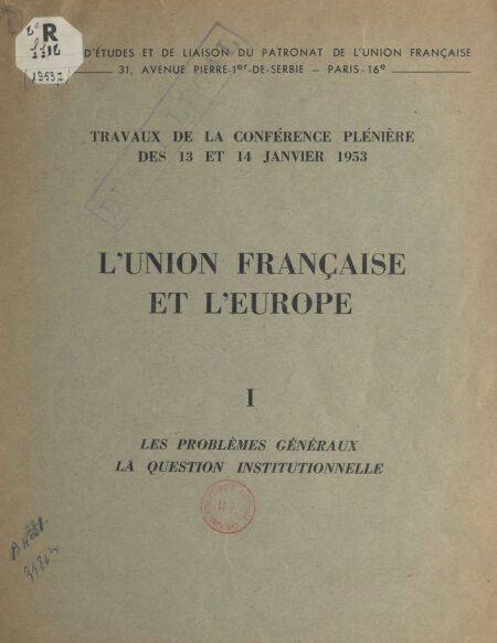 7. L'Union française et l'Europe (1). Les problèmes généraux. La question institutionnelle