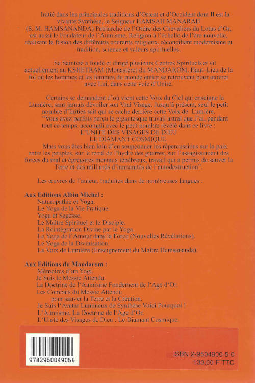 Sommaire : Le calvaire infernal de DIEU pendant 36000 ans d'Age de Fer Le retour de DIEU dans toute Sa Gloire et Sa Splendeur Le Messie Cosmo-Universel L'Unité des Visages de DIEU Les Noms du Seigneur La Nouvelle Alliance du Christ et du Bouddha dans le AUM La notion d'Homo-Cosmicus, le Purusha et le Diamant de la Création La Loi des Cycles L'Age du Diamant Le But à atteindre : la notion de Darpana Bouddha et de Vajra Bouddha La Nouvelle Loi des plans célestes : le service désintéressé du Dharma, le refus de la recherche des récompenses Nouvelles perspectives en matière de Karma La Loi de Sélection des Âmes Colonnes de Lumière et remplacement des paradis artificiels Les dix leçons de l'Age d'Or et les dix-sept clés de la Réintégration Divine Des secrets pour avancer plus rapidement Prières, actions et méditations, les bienfaits de la méditation sur le vide La philosophie de l'Hiranya Vajra Chakra Code d'honneur des Initiés du Temple La discipline monastique Le devenir de l'Humanité dans l'Age d'Or La complainte du Jardinier Céleste Mes Messages au monde et les vingt mots d'ordre de Perfection