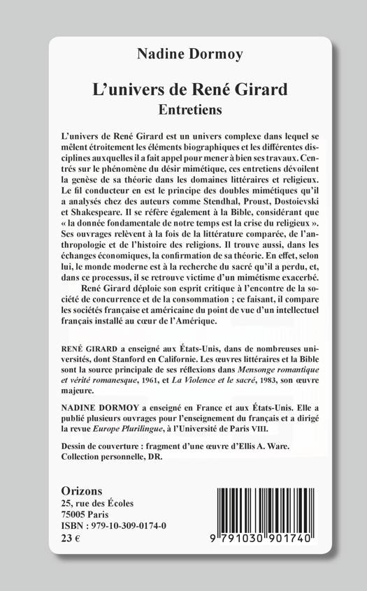 L'univers de René Girard est un univers complexe dans lequel se mêlent étroitement les éléments biographiques et les différentes disciplines auxquelles il a fait appel pour mener à bien ses travaux. Centrés sur le phénomène du désir mimétique, les entretiens, qui charpentent cet ouvrage dévoilent la genèse de la théorie du philosophe, dans les domaines littéraires et religieux. Outre Stendhal, Proust, Dostoievski et Shakespeare, Girard se réfère à la Bible, considérant que « la donnée fondamentale de notre temps est la crise du religieux ». Ses ouvrages relèvent à la fois de la littérature comparée, de l'anthropologie et de l'histoire des religions.