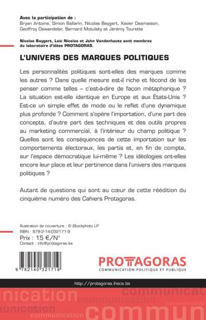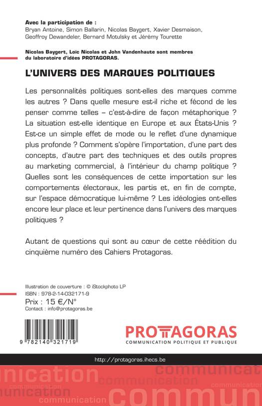 Les personnalités politiques sont-elles des marques comme les autres ? Dans quelle mesure est-il riche et fécond de les penser comme telles - c'est-à-dire de façon métaphorique ? La situation est-elle identique en Europe et aux États-Unis ? Est-ce un simple effet de mode ou le reflet d'une dynamique plus profonde ? Comment s'opère l'importation, d'une part des concepts, d'autre part des techniques et des outils propres au marketing commercial, à l'intérieur du champ politique ? Quelles sont les conséquences de cette importation sur les comportements électoraux, les partis et, en fin de compte, sur l'espace démocratique lui-même ? Les idéologies ont-elles encore leur place et leur pertinence dans l'univers des marques politiques ? Autant de questions qui sont au coeur de cette réédition du cinquième numéro des Cahiers Protagoras.
