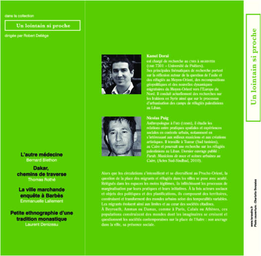 Alors que les circulations s'intensifient et se diversifient au Proche-Orient, la question de la place des migrants et réfugiés dans les villes se pose avec acuité. Relégués dans les espaces les moins légitimes, ils infléchissent les processus de marginalisation par leurs pratiques et initiatives. Ils évoluent ainsi aux limites et au coeur des sociétés citadines. A Beyrouth, Amman ou Damas, comme à Paris, Calais, Athènes, ils questionnent les sociétés contemporaines sur la place de l'Autre.