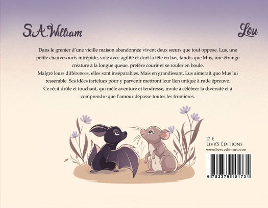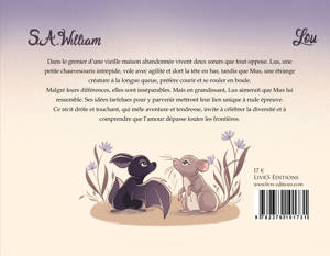 Dans le grenier d’une vieille maison abandonnée vivent deux sœurs que tout oppose. Lus, une petite chauvesouris intrépide, vole avec agilité et dort la tête en bas, tandis que Mus, une étrange créature à la longue queue, préfère courir et se rouler en boule. Malgré leurs différences, elles sont inséparables. Mais en grandissant, Lus aimerait que Mus lui ressemble. Ses idées farfelues pour y parvenir mettront leur lien unique à rude épreuve. Ce récit touchant et drôle, qui mêle aventure et tendresse, invite à célébrer les différences et à comprendre que l’amour dépasse toutes les frontières.