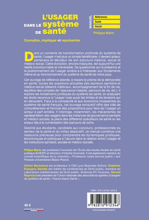 Cet ouvrage de référence aborde, à travers le prisme de la démocratie en santé, toutes les questions actuelles des secteurs sanitaire et médico-social (déserts médicaux, accompagnement de la fin de vie, équilibre des comptes de l’assurance maladie, parcours de vie, etc.). Il explore les fondements juridiques du système de santé, en analysant les droits reconnus à l’usager mais aussi les limites et les tensions qui en découlent. Face à la complexité et aux évolutions incessantes du système de santé français, cet ouvrage exhaustif offre des clés de compréhension et formule des propositions pour faire de l’usager un acteur à part entière. Il interroge, notamment, les mécanismes de représentation des usagers dans les instances de gouvernance sanitaire et médico-sociale, la place des différents opérateurs de santé ou les enjeux liés à la numérisation des parcours de soins.
