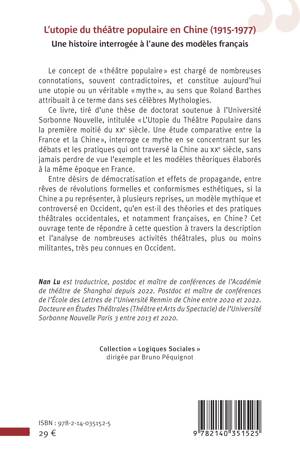 Ce livre, tiré d’une thèse de doctorat soutenue à l’Université Sorbonne Nouvelle, intitulée « L’Utopie du Théâtre Populaire dans la première moitié du XXe siècle. Une étude comparative entre la France et la Chine », interroge ce mythe en se concentrant sur les débats et les pratiques qui ont traversé la Chine au XXe siècle, sans jamais perdre de vue l’exemple et les modèles théoriques élaborés à la même époque en France.