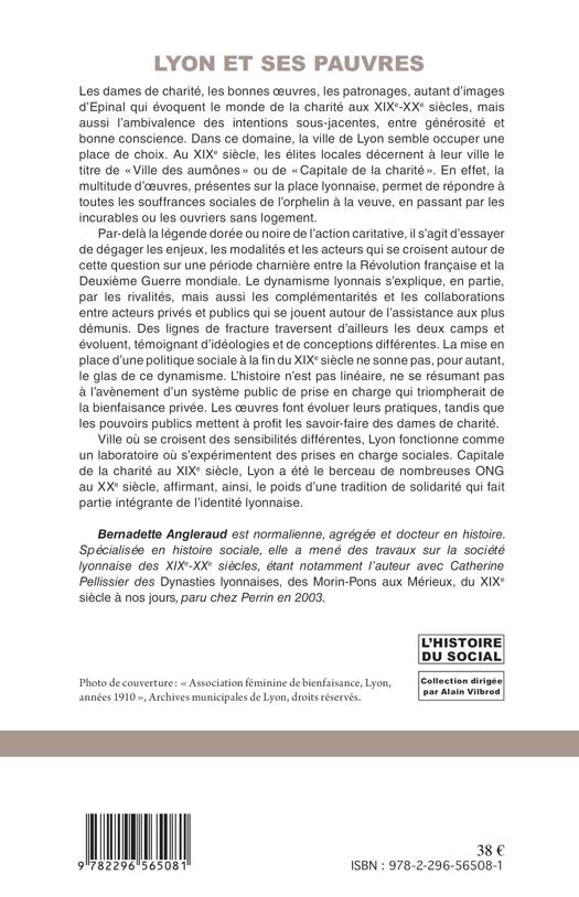 Surnommée " Ville des aumônes " ou " Capitale de la charité " au XIXe siècle, Lyon occupe une place de choix dans le domaine de la charité. Ce dynamisme se poursuit après la mise en place d'une politique sociale fin XIXe. Elle est le berceau de nombreuses ONG au XXe siècle, affirmant ainsi que la solidarité fait partie intégrante de l'identité lyonnaise. Ce livre dégage les enjeux, les modalités et les acteurs qui se croisent à Lyon autour de la question de la charité entre 1800 et 1939.