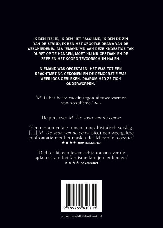 Door zijn indrukwekkende vermenging van feit en fictie weet Scurati invoelbaar te maken hoe het is om in het centrum van de macht te zitten. Aanstekelijk en psychologisch treffend beschrijft hij de periode van 1925 tot 1932, de eerste jaren van Mussolini als Duce: de jaren waarin de democratie verdween.