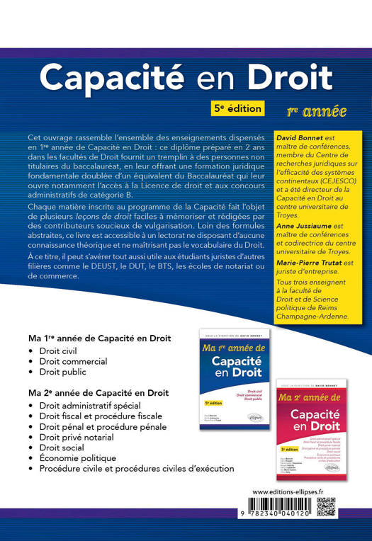 Cet ouvrage rassemble l'ensemble des enseignements dispensés en 1re année de Capacité en Droit.