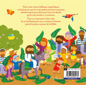Onze scènes bibliques magnifiques et lumineuses que les tout-petits pourront examiner attentivement pour découvrir tous les détails qu’ils sont invités à y retrouver. Tout en s’amusant à faire cela, ils se familiariseront avec certaines histoires parmi les plus connues de la Bible.