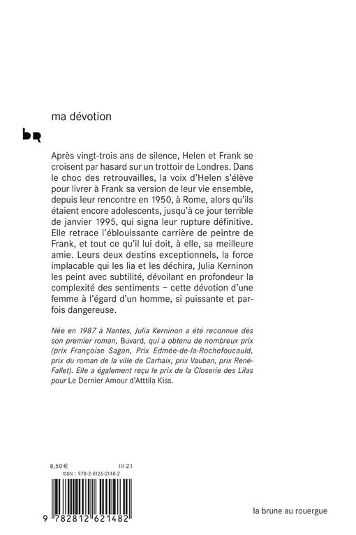 Après vingt-trois ans de silence, Helen et Frank se croisent par hasard sur un trottoir de Londres. Dans le choc des retrouvailles, la voix d'Helen s'élève pour livrer à Frank sa version de leur vie ensemble, depuis leur rencontre en 1950, à Rome, alors qu'ils étaient encore adolescents, jusqu'à ce jour terrible de janvier 1995, qui signa leur rupture définitive. Elle retrace l'éblouissante carrière de peintre de Frank, et tout ce qu'il lui doit, à elle, sa meilleure amie. Leurs deux destins exceptionnels, la force implacable qui les lia et les déchira, Julia Kerninon les peint avec subtilité, dévoilant en profondeur la complexité des sentiments - cette dévotion d'une femme à l'égard d'un homme, si puissante et parfois dangereuse.