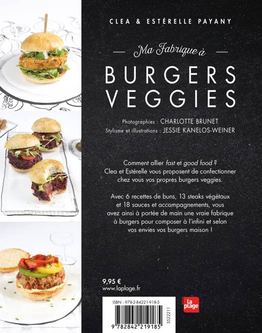 Comment allier fast et good food ? Clea et Estérelle vous proposent de confectionner chez vous vos propres burgers veggies. Avec 6 recettes de buns, 13 steaks végétaux et 18 sauces et accompagnements, vous avez ainsi à portée de main une vraie fabrique à burgers pour composer à l’in ni et selon vos envies vos burgers maison !
