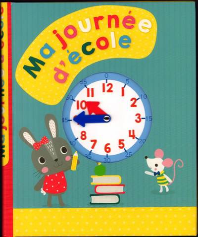 Il manipule l'horloge sur chaque double-page et apprend ainsi à reproduire l'heure sur le cadran.