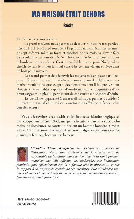 Ce livre se lit à trois niveaux. Le premier nous fait découvrir Noël. Celui-ci perd son père à quatre ans. Sa mère, femme au foyer, a la responsabilité de sept enfants. Pour fuir ce milieu familial violent, Noël se retire dans les bois, pour survivre. Le deuxième permet de découvrir les moyens mis en place par Noël pour effectuer un travail de résilience, ainsi que les aptitudes d'autoformation dont il fait preuve, lui permettant de construire son identité adulte. Le troisième permet d'accéder, à l'intérêt du travail d'écriture à deux mains et ses effets positifs pour chacun des acteurs.
