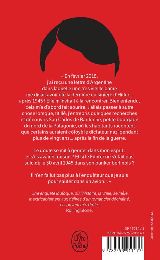 « En février 2015, j'ai reçu une lettre d'Argentine dans laquelle une très vieille dame me disait avoir été la dernière cuisinière d'Hitler... après 1945 ! Elle m'invitait à la rencontrer. Bien entendu, cela m'a d'abord fait sourire. J'allais passer à autre chose lorsque, titillé, j'entrepris quelques recherches et découvris San Carlos de Bariloche, petite bourgade du nord de la Patagonie, où les habitants racontent que certains auraient côtoyé le dictateur nazi pendant plus de vingt ans... après la fin de la guerre.