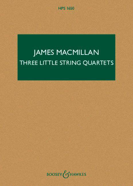 (Boosey & Hawkes Scores/Books). This publication gathers together three miniatures for string quartet, all composed 'in memoriam' a particular individual. Memento (4 minutes) was written in memory of the composer's friend, David Huntley, the representative of Boosey & Hawkes in the USA, who died in 1994. It was premiered at his memorial concert in New York by the Kronos Quartet. The music is slow, delicate and tentative and is based on the modality of Gaelic lament music and the Gaelic heterophony of psalm-singing in the Hebrides. For Sonny (5 minutes) was written in memory of a little boy, the grandson of a friend, who died a few days after his birth. Throughout, the first violin plays a simple fragment, like a nursery rhyme, repeating over and over again, pizzicato. The other instruments provide an ever-changing context for this little tune, sometimes accompanying it with easy harmonies, sometimes straying into stranger territory. First performed in 2012 at Peterhouse, Cambridge, by the Edinburgh Quartet. The title of Ein Lamplein verlosch ('A little lamp went out') (5 minutes) is a reference to a line in Gustav Mahler's Kindertotenlieder ('Songs on the death of children', after Friedrich Ruckert). The song 'Nun will die Sonn' so hell aufgeh'n' ('Now the sun will rise again as brightly') ends 'Ein Lamplein verlosch in meinem Zelt, heil sei dem Freudenlicht der Welt' ('A little lamp went out in my life, Blessed be the light of joy in the world'), and the strings' mysterious harmonics and shimmering glissandi reflect the atmosphere of Ruckert's lament for the dead. "Spare melodies hang in the air against floating harmonies, punctuated by gulfs of silence that seem to embody distilled grief" (The Times). First performed in 2018 in the Mendelssohn-Saal at the Gewandhaus, Leipzig, by the Gewandhaus-Quartett.