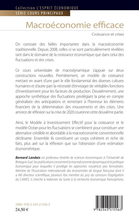On constate des failles importantes dans la macroéconomie traditionnelle. Depuis 2008, elles se sont révélées dans les domaine de la croissance économique et des fluctuations et des crises. Ce cours universitaire de macrodynamique s'appuie sur deux constructions nouvelles. Premièrement, un modèle de croissance mettant en avant d'une part le rôle fondamental des diverses cultures humaines et d'autre part la nécessité d'envisager de véritables fonctions d'investissement pour les facteurs de production. Deuxièmement, une approche synthétique des fluctuations privilégiant la prise en compte généralisée des anticipations et remettant à l'honneur les éléments financiers de la détermination des mouvements et des crises. Une amorce de réflexion sur la crise de 2020 couronne cette deuxième partie. Ainsi, le Modèle à Investissement Effectif pour la croissance et le modèle Océan pour les fluctuations se combinent pour constituer une alternative à la macroéconomie conventionnelle.