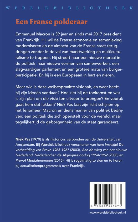 Emmanuel Macron is 39 jaar en sinds mei 2017 president van Frankrijk. Hij wil de Franse economie en samenleving moderniseren en de almacht van de Franse staat terugdringen zonder in de val van marktwerking en multiculturalisme te trappen. Hij streeft naar een nieuwe moraal in de politiek, naar nieuwe vormen van samenwerken, een slagvaardiger parlement en een grotere mate van burgerparticipatie. En hij is een Europeaan in hart en nieren. Maar wie is deze welbespraakte visionair, en waar heeft hij zijn ideeën vandaan? Hoe ziet hij de toekomst en wat is zijn plan om die visie ten uitvoer te brengen? En vooral: gaat hem dat lukken? Niek Pas laat zijn licht schijnen op het fenomeen Macron en diens manier van politiek bedrijven: een politiek die zich openstelt voor de wereld, maar tegelijkertijd de geborgenheid van de staat garandeert.