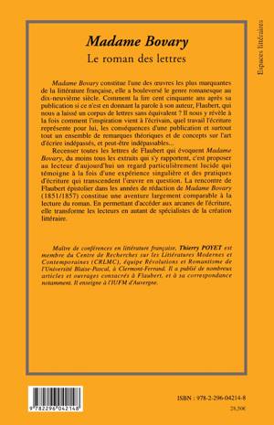 Madame Bovary constitue l'une des oeuvres les plus marquantes de la littérature française, elle a bouleversé le genre romanesque au dix-neuvième siècle. Comment la lire cent cinquante ans après sa publication si ce n'est en donnant la parole à son auteur, Flaubert, qui nous a laissé un corpus de lettres sans équivalent ?