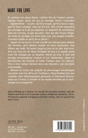En quittant son époux Byron, célèbre PDG de l'empire technologique Gogol, après dix ans de mariage, Hazel s'attendait — légitimement — au pire. Qu'il la traque, qu'il la force à regagner le foyer conjugal, voire qu'il la tue. Elle n'avait cependant pas envisagé qu'il ait pu implanter un dispositif de surveillance dans son cerveau, ni que son père, chez qui elle trouve refuge, ait choisi de partager ses vieux jours avec une poupée sexuelle. Comment diable se sortir de ce pétrin ? Jasper est un escroc. Il met à profit ses charmes pour séduire des femmes, qu'il déleste ensuite de leurs économies. Une affaire qui roule. Du moins jusqu'au jour où ce don Juan invétéré aux faux airs de Jésus réchappe de peu à la noyade après avoir été attaqué par un dauphin. Mordu au bras, il sent une étrange métamorphose s'opérer en lui. Subitement, Jasper se désintéresse des femmes et brûle d'amour pour les cétacés. Vivre à leur contact devient alors une obsession, une nécessité irrépressible... Mettant en scène une poignée de personnages excentriques aux prises avec les affres de l'existence, Alissa Nutting livre une comédie noire délicieusement grinçante et follement divertissante sur l'amour, la famille et un monde obnubilé par la technologie et la prospérité.