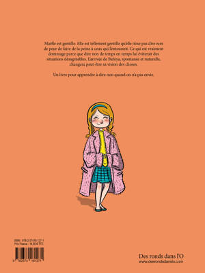Maëlle est gentille. Elle est tellement gentille qu’elle n’ose pas dire non de peur de faire de la peine à ceux qui l’entourent. Ce qui est vraiment dommage parce que dire non de temps en temps lui éviterait des situations désagréables. L’arrivée de Bahiya, spontanée et naturelle, changera peut-être sa vision des choses.