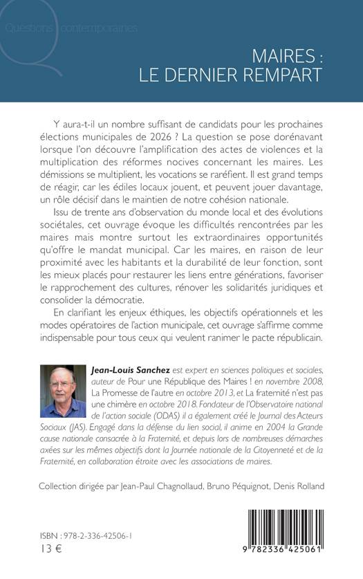 Y aura-t-il un nombre suffisant de candidats pour les prochaines élections municipales de 2026 ? La question se pose dorénavant lorsque l'on découvre l'amplification des actes de violences et la multiplication des réformes nocives concernant les maires. Les démissions se multiplient, les vocations se raréfient. Il est grand temps de réagir, car les édiles locaux jouent, et peuvent jouer davantage, un rôle décisif dans le maintien de notre cohésion nationale. Issu de trente ans d'observation du monde local et des évolutions sociétales, cet ouvrage évoque les difficultés rencontrées par les maires mais montre surtout les extraordinaires opportunités qu'offre le mandat municipal. Car les maires, en raison de leur proximité avec les habitants et la durabilité de leur fonction, sont les mieux placés pour restaurer les liens entre générations, favoriser le rapprochement des cultures, rénover les solidarités juridiques et consolider la démocratie. En clarifiant les enjeux éthiques, les objectifs opérationnels et les modes opératoires de l'action municipale, cet ouvrage s'affirme comme indispensable pour tous ceux qui veulent ranimer le pacte républicain.