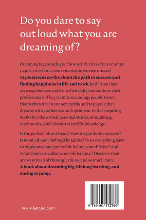 Dreaming big propels you forward. But it is often a bumpy road. In this book, two remarkable women unravel 15 persistent myths about the path to success and finding happiness in life and work, both from their own experiences and from their daily interactions with professionals. They want to encourage people to set themselves free from such myths and to pursue their dreams with confidence and optimism. In this inspiring book they share their personal stories, stimulating testimonies, and relevant scientific knowledge.
