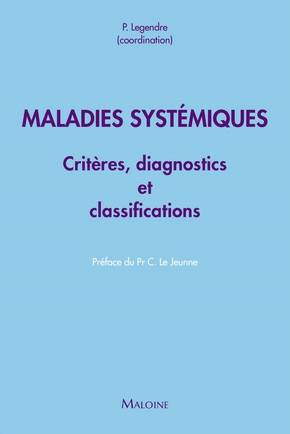 À l’inverse de nombreuses pathologies d’organes, dont le diagnostic repose sur un test de confirmation unique, poser le diagnostic de maladie systémique nécessite le plus souvent de rassembler plusieurs faisceaux d’arguments concordants. Ainsi, il existe de nombreux critères diagnostiques ou de classification de ces pathologies systémiques. Pour faciliter la tâche du praticien, nous avons rassemblé dans cet ouvrage les critères diagnostiques et de classification les plus utilisés pour chaque pathologie systémique.