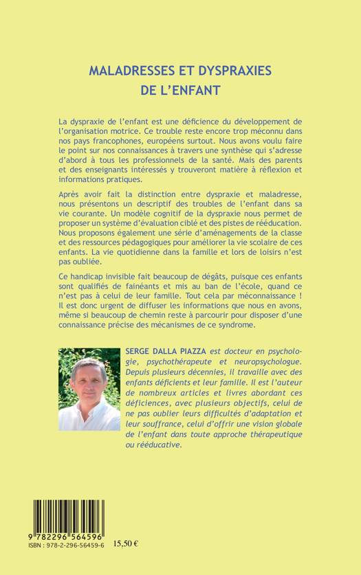 La dyspraxie de l'enfant est une déficience du développement de l'organisation motrice. Après avoir fait la distinction entre dyspraxie et maladresse, l'auteur présente un descriptif des troubles de l'enfant dans sa vie courante, propose des pistes de rééducation et une série d'aménagements de la classe et des ressources pédagogiques pour améliorer sa vie scolaire. La vie quotidienne dasn la famille et lors des loisirs n'est pas oubliée.