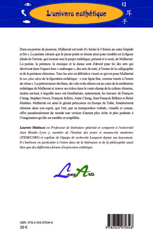 Mallarmé s'est donné pour modèle d'artiste idéal le peintre chinois, qui incarne tout son projet esthétique. Pour lui, tous les arts visent le nec plus ultra de la figuration esthétique : "une ligne fine, comme tracée à l'encre de Chine". La prééminence du blanc, du vide et du silence est au coeur de la méditation esthétique du poète et trouve ses échos dans la culture chinoise, faisant de Mallarmé un précurseur en Europe de l'idée que l'art offre une vision d'autant plus riche et parlante à l'imagination qu'elle est raréfiée, simplifiée.